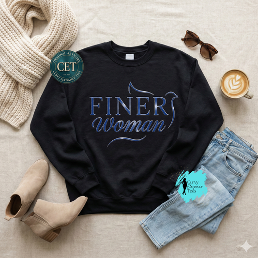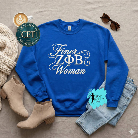 Finer Woman Sweatshirt – Blue & White Zeta Sorority Crewneck for Divine 9 Women