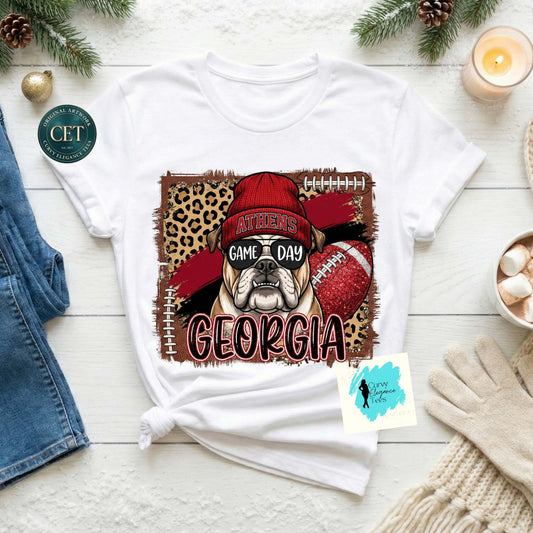 Georgia Game Day Bulldog Tee — Athens Beanie & Leopard Print Football Shirt (S–5XL)