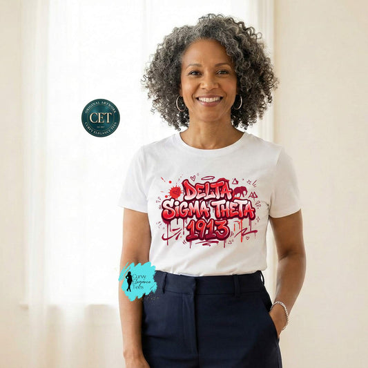 Delta Sigma Theta 1913 Graffiti T-Shirt – Red & White Sorority Tee for DST Divas