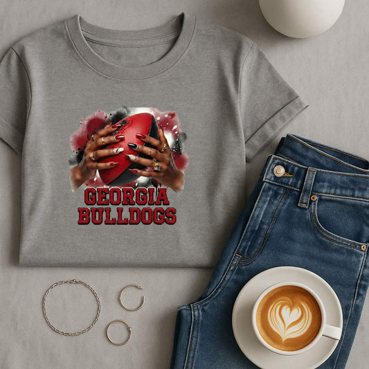 Georgia Bulldogs Women’s Game Day Tee — Hands & Football Graphic Shirt (S–5XL)