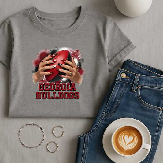 Georgia Bulldogs Women’s Game Day Tee — Nails & Football Graphic Shirt (S–5XL)