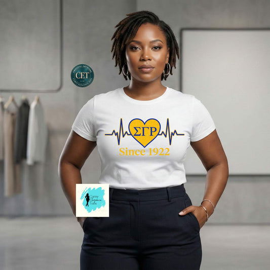 Sigma Gamma Rho Heartbeat T-Shirt – Since 1922 Blue & Gold Sorority Tee