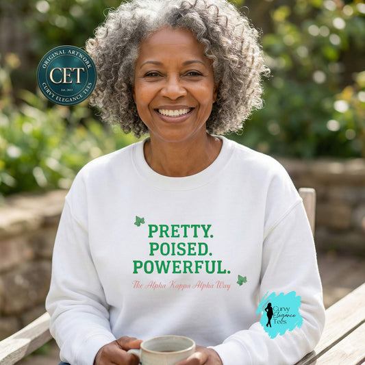 Pretty. Poised. Powerful. — AKA Inspired Women’s Sweatshirt | Sorority Style Crewneck | Sizes S–5XL
